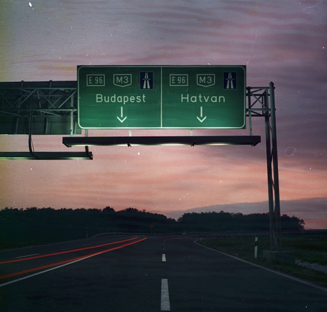 Autópálya naplementében
