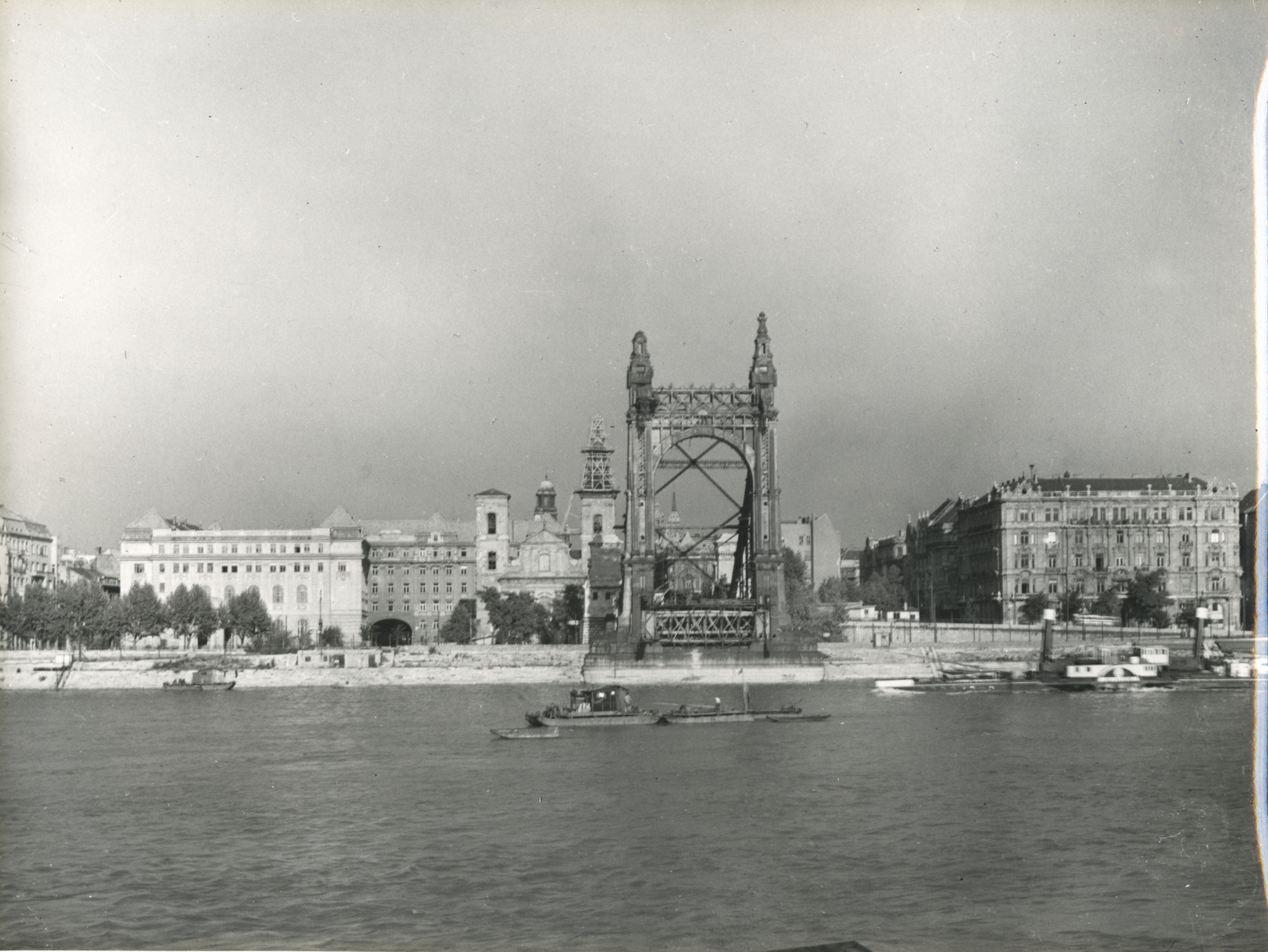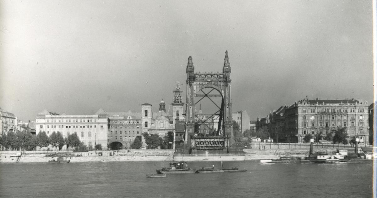 A felrobbantott Erzsébet híd felmérése